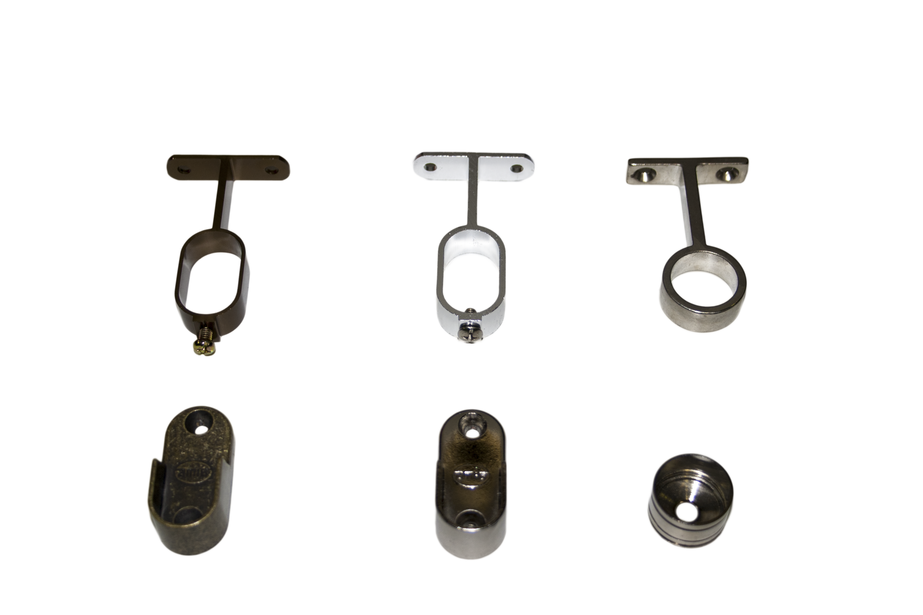 Barras circulares y ovaladas en acero blanco, marrón y cromado y aluminio anodizado o plateado.