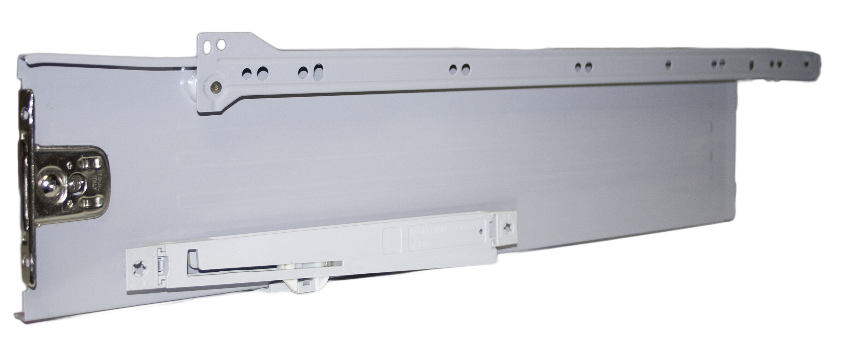 Guías para cajones medidas desde 300 mm a 500 mm, color marron y blanco.